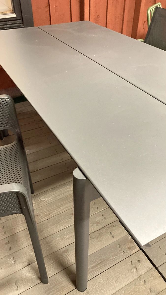 Vid detta bord sitter du flera när sommarens gäster kommer på besök, eller väljer att sitta nära för den mer intima middagen. Avståndet mellan bordsbenen blir det samma, för att du alltid ska sitta lika bekvämt.