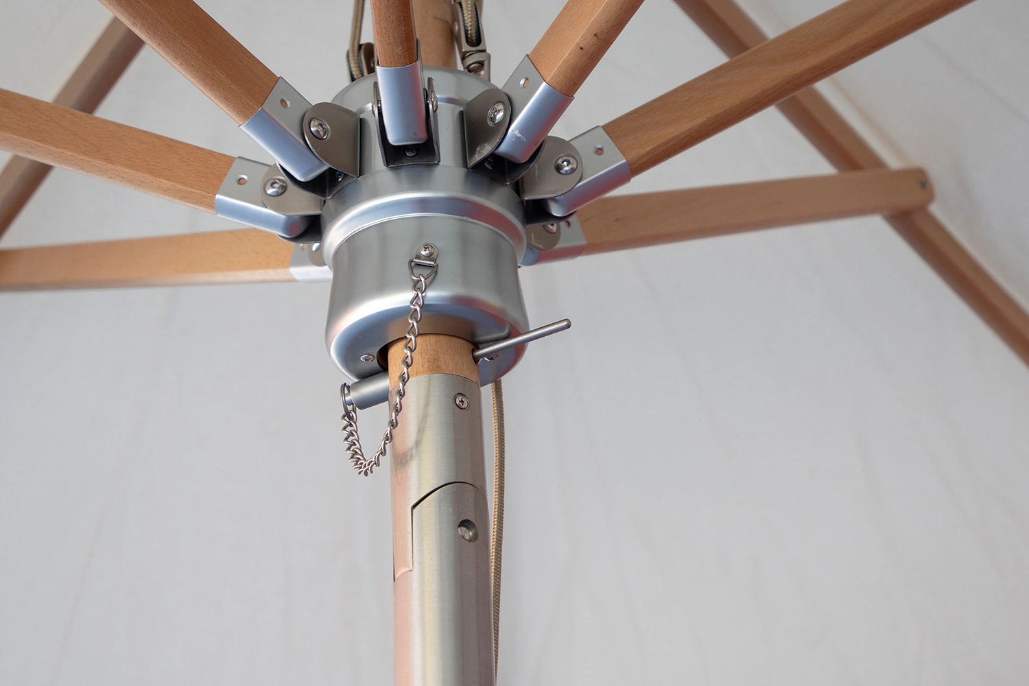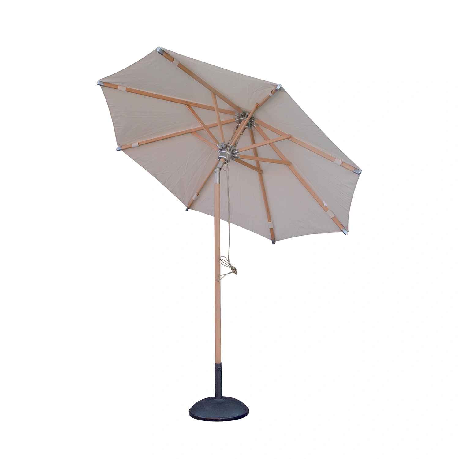 Backyard parasoll har ett smakfullt och stilrent utseende med parasollduk i beige kombinerat med en stomme i FSC-certifierad björkträ.