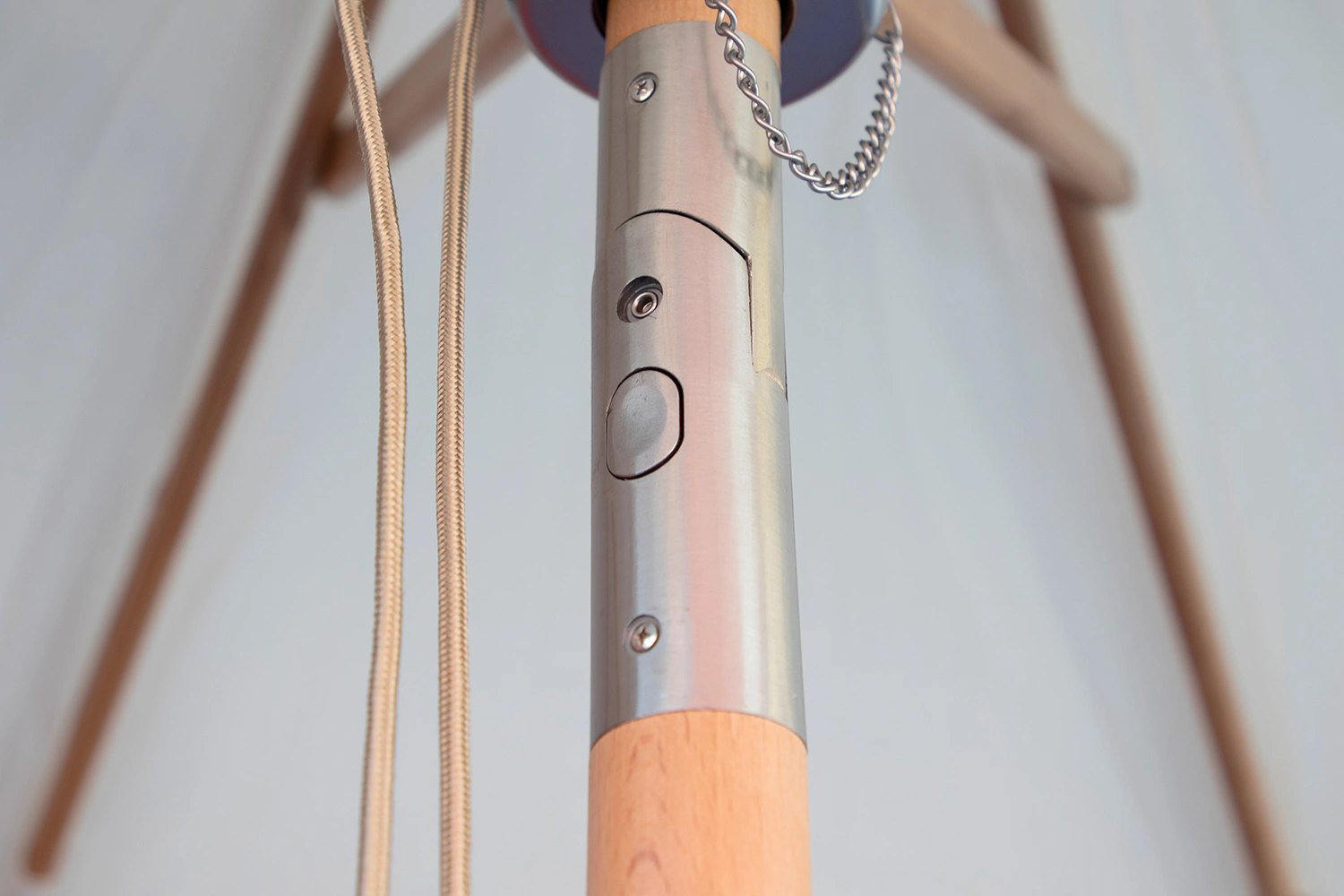 Parasollet är även utrustat med en så kallad puch -tilt, tryck in knappen och vinkla sedan parasollet.