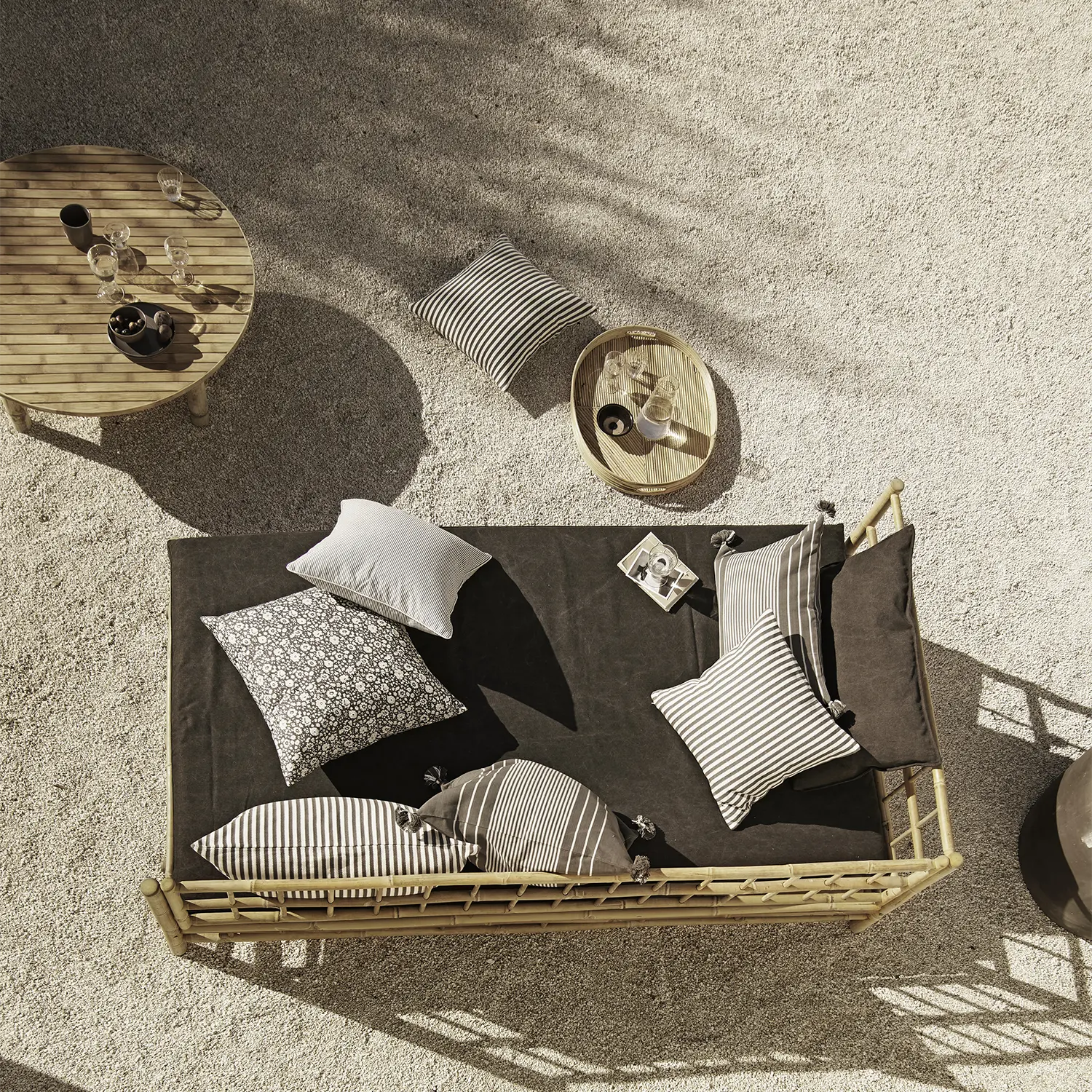 Handgjort i Vietnam och behandlade med naturlig vattenbaserad träolja, är detta soffbord i bambu är idealiskt för både inomhus- och utomhusbruk. Behandlingen gör möblerna mer motståndskraftiga. Bordet kan användas som soffbord eller som loungebord på terrassen. Fyll soffbordet med vita krukor och gröna växter för att skapa en naturlig och botanisk look.