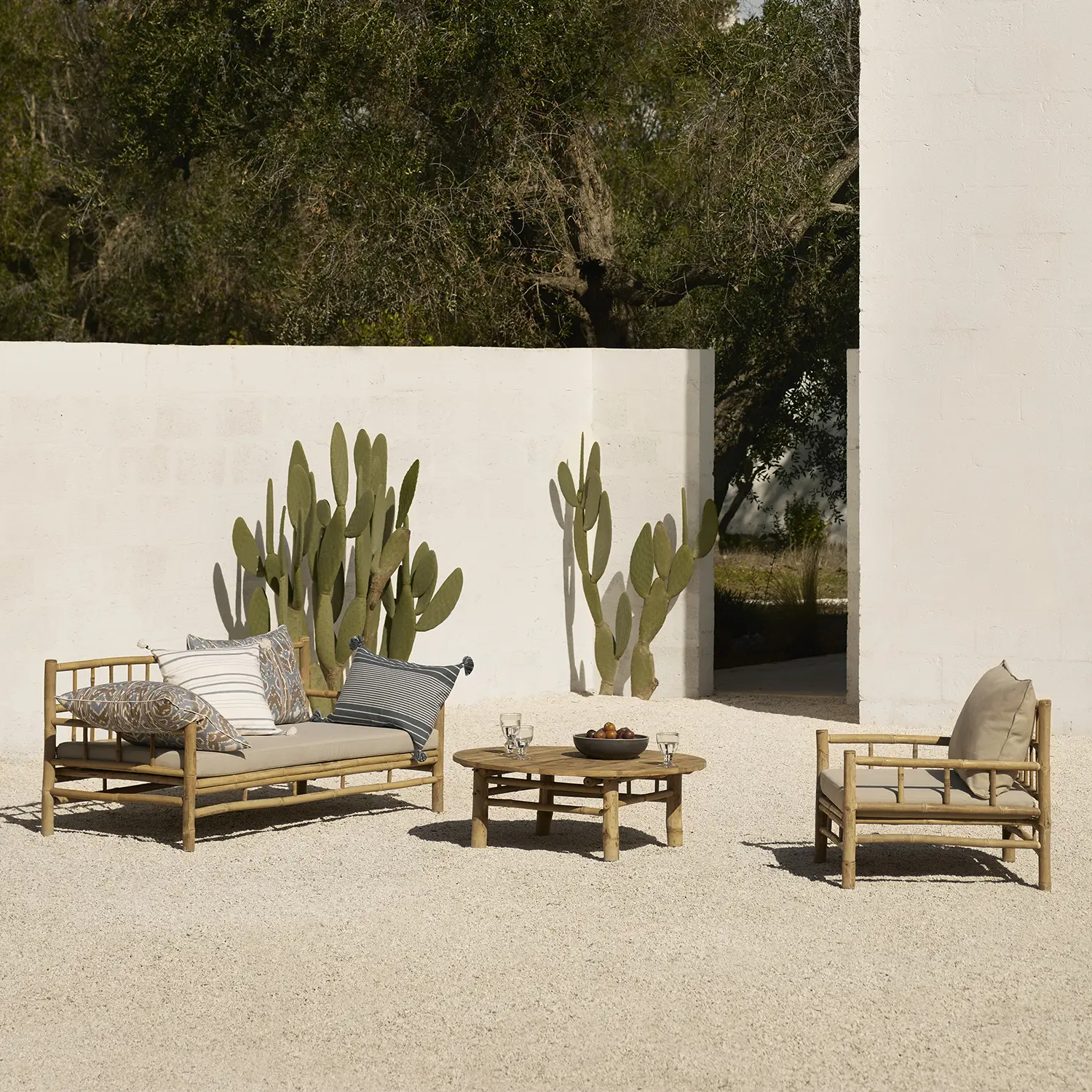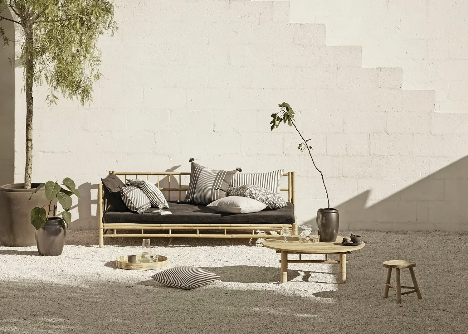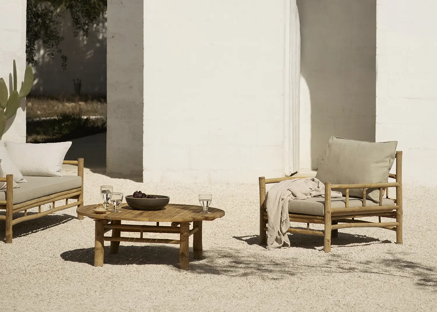 Tine K’s bambumöbler är handgjorda behandlade med en vattenbaserad naturlig träolja för att göra bambun mer motståndskraftig mot vind och väder.