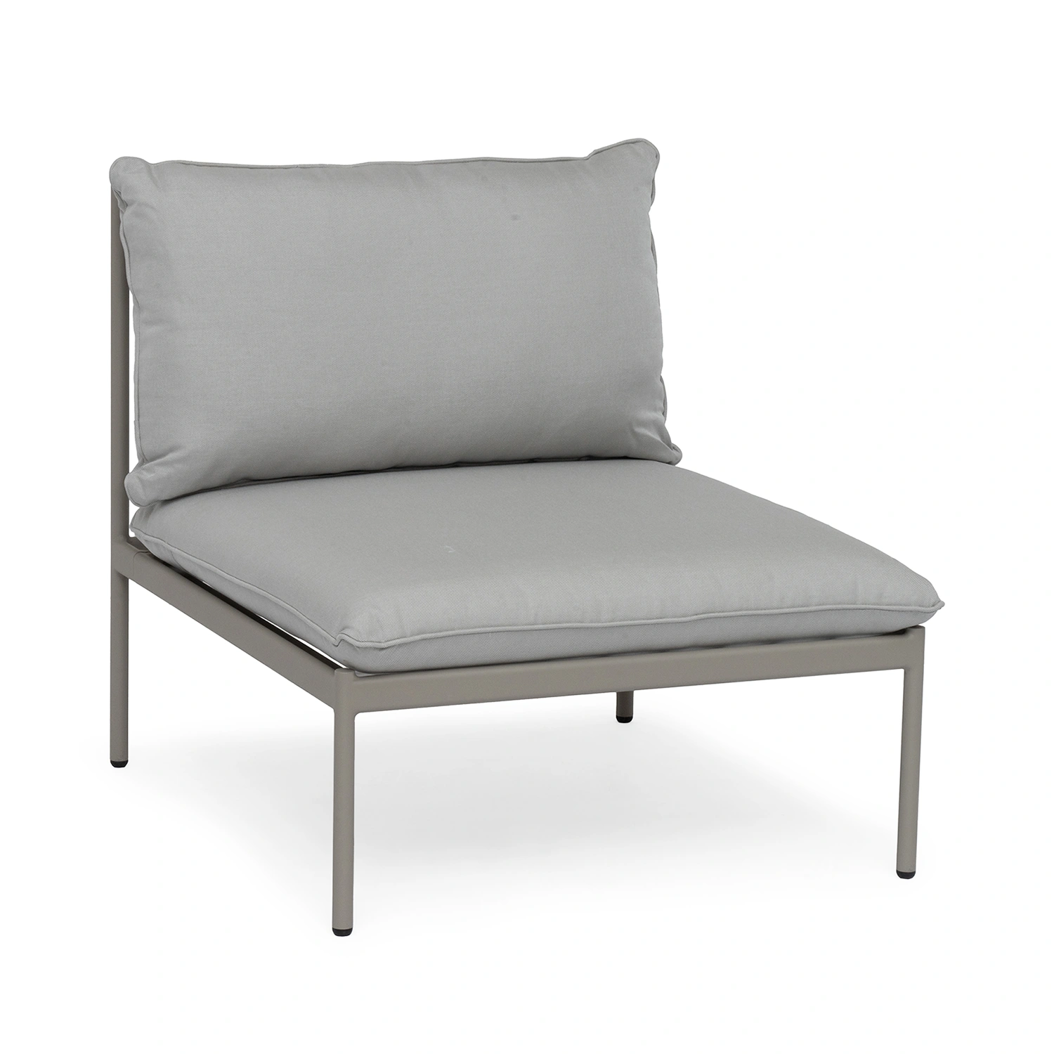 Mittdel i serien Bolmsö från Hillerstorp. Tillverkad i pulverlackerad aluminium med dynor i fjädergrå olefin.