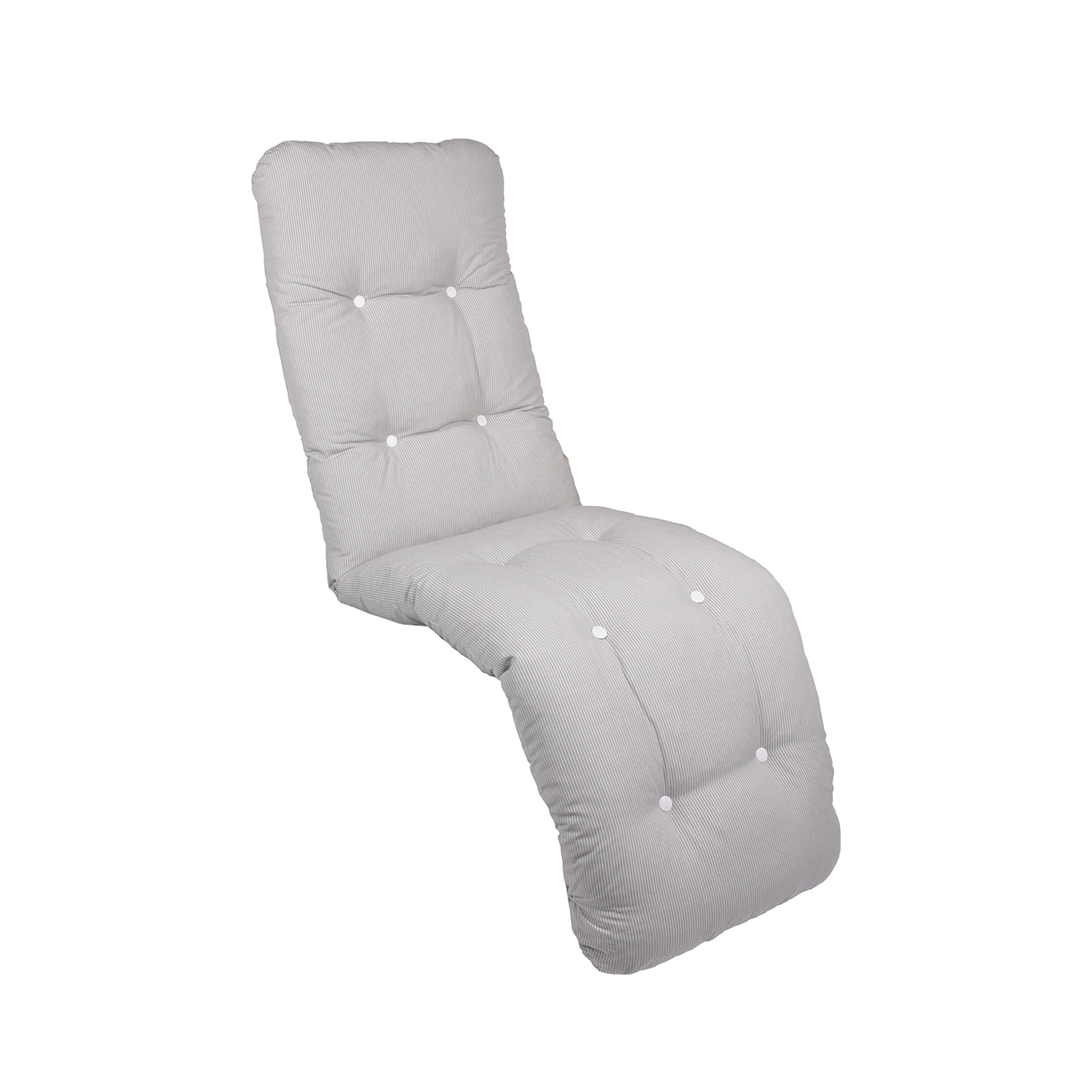 Dynan visas här i randigttyg i Dralon med vita knappar i plast i rygg och sits. Dralondynor är mycket tåliga mot solblekning och kommer att hålla färgen i många år.
