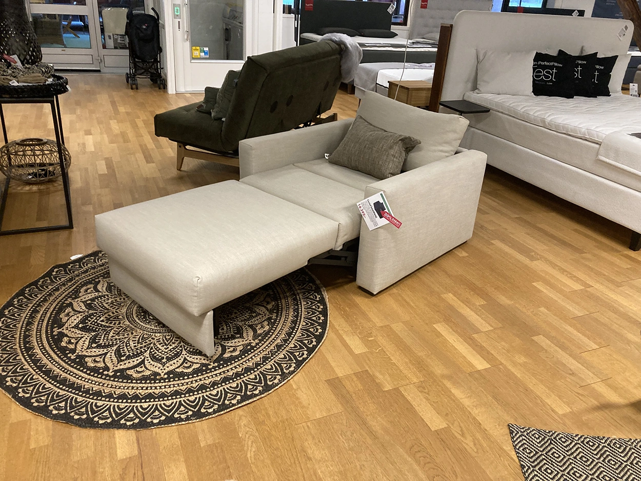 Cosial är en kompakt multifunktionell fåtölj som som kan bäddas ut till en extra sovplats.