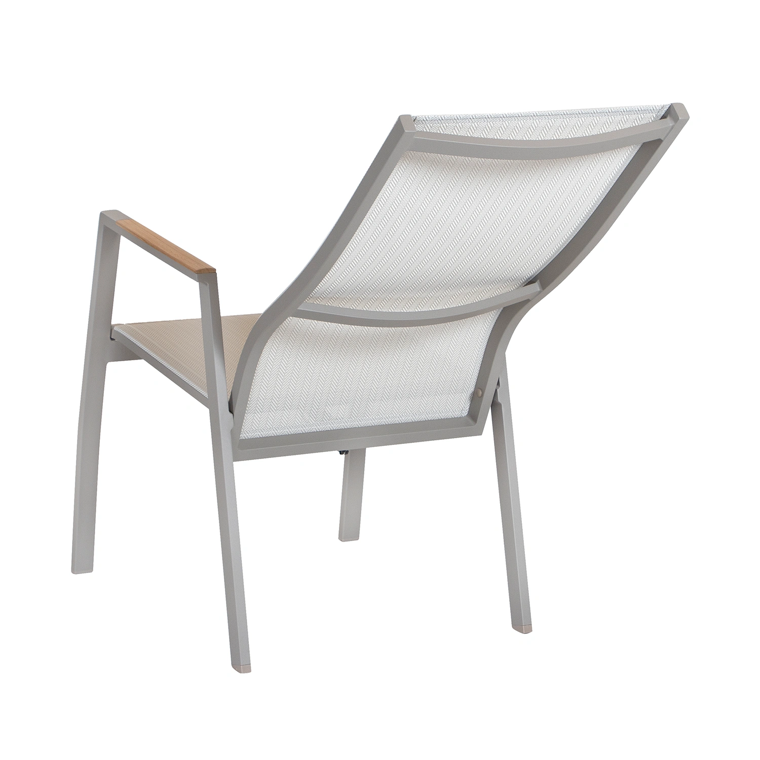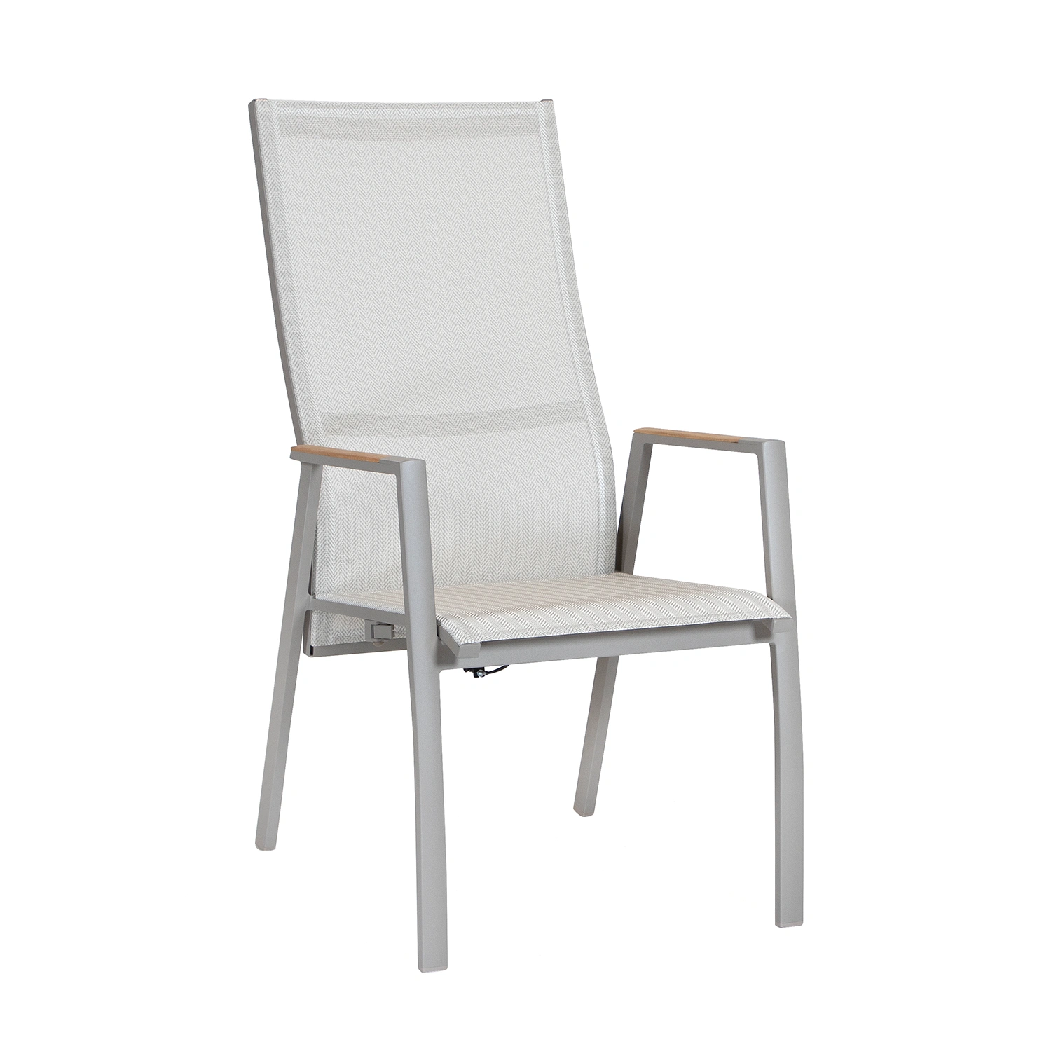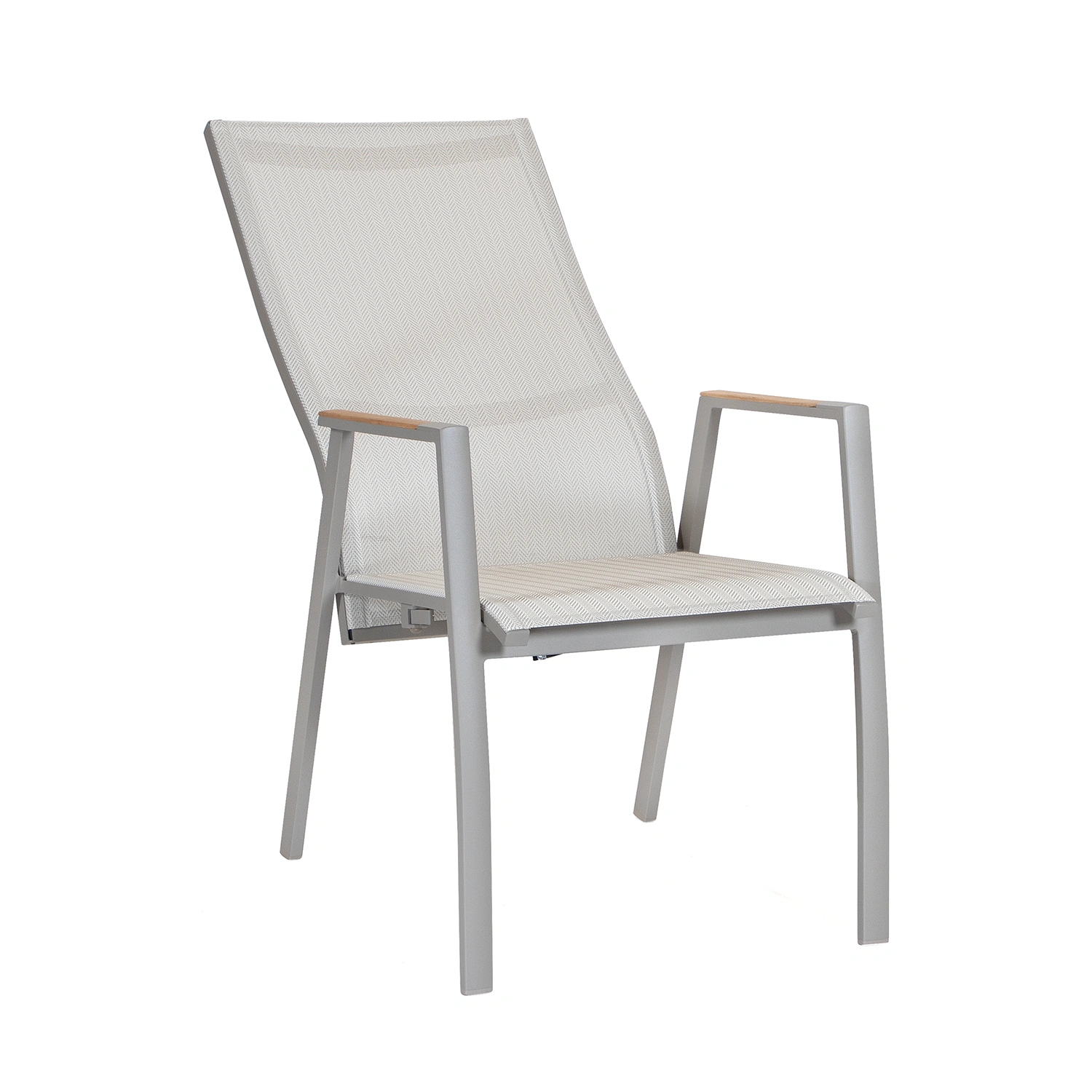 Dallas är en serie med nätta aluminiumstolar med textilene eller QuickDry-sitsar. Stolen är tillverkad i tåliga material så som aluminium och textilen. Textilensitsen är beige och fiskbensmönstrad, vilket ger en extra elegant touch. Ryggen är steglöst ställbar.
