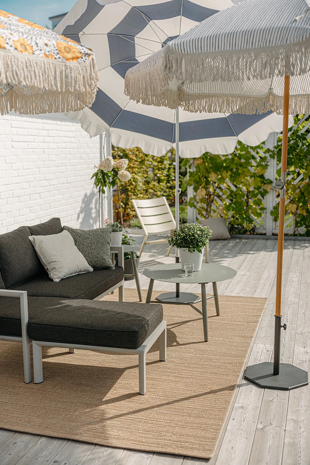 Åk till stranden med stil med Follina, parasollet som kombinerar stil och funktion. Den har en push-up öppningsmekanism med en enkel vrid-och-luta-funktion.