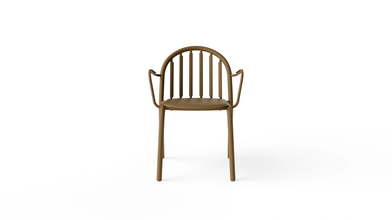 Fred’s karmstol är en modern version av den klassiska pinstolen. Den här stolen är tillverkad i väderresistent aluminium och sitsen är kurvig som en kudde. Det, i kombination med armstöden, gör den extra bekväm. Öppningen i sitsen är formad som ett leende och ser till att regnvatten snabbt försvinner.