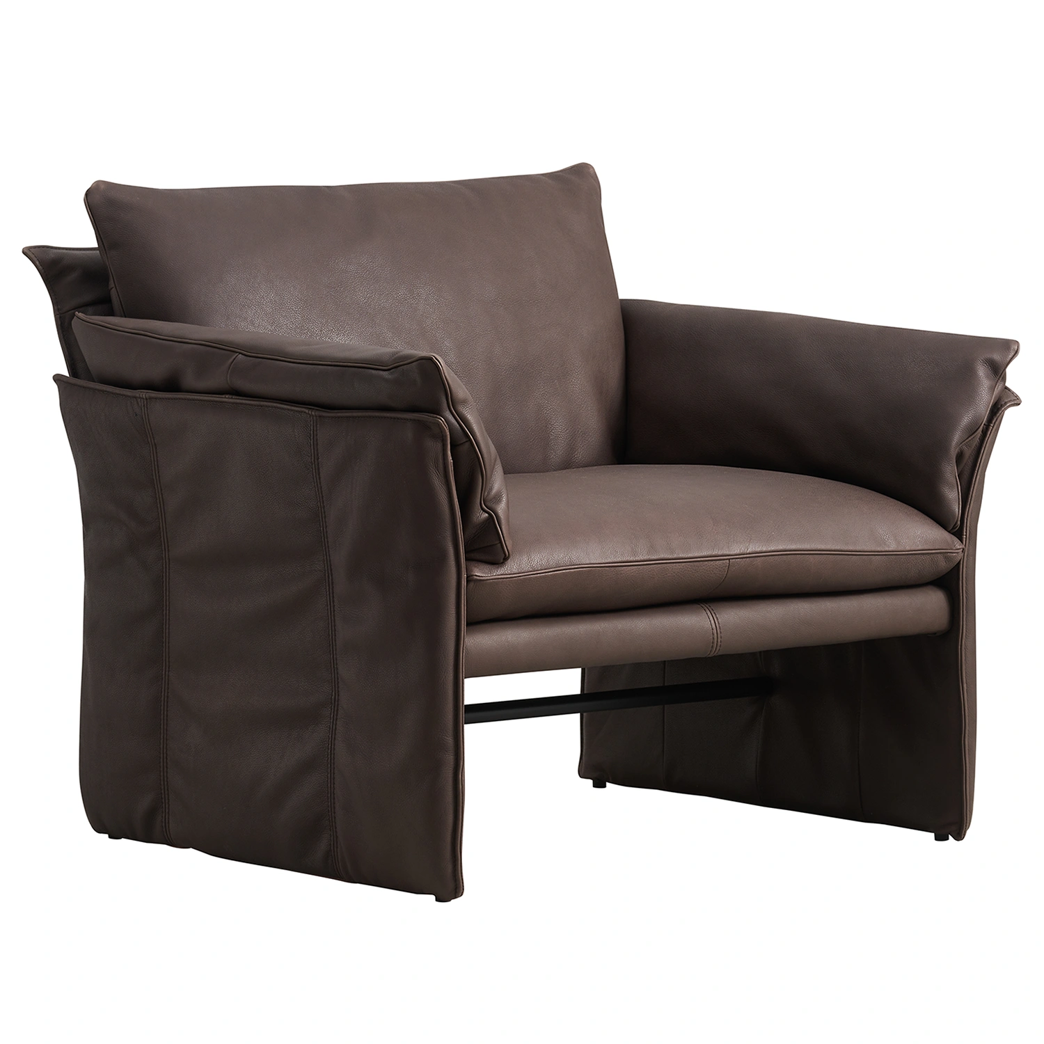 En generös fåtölj i exklusivt fullnarvsläder som förenar modern design med exceptionell komfort.