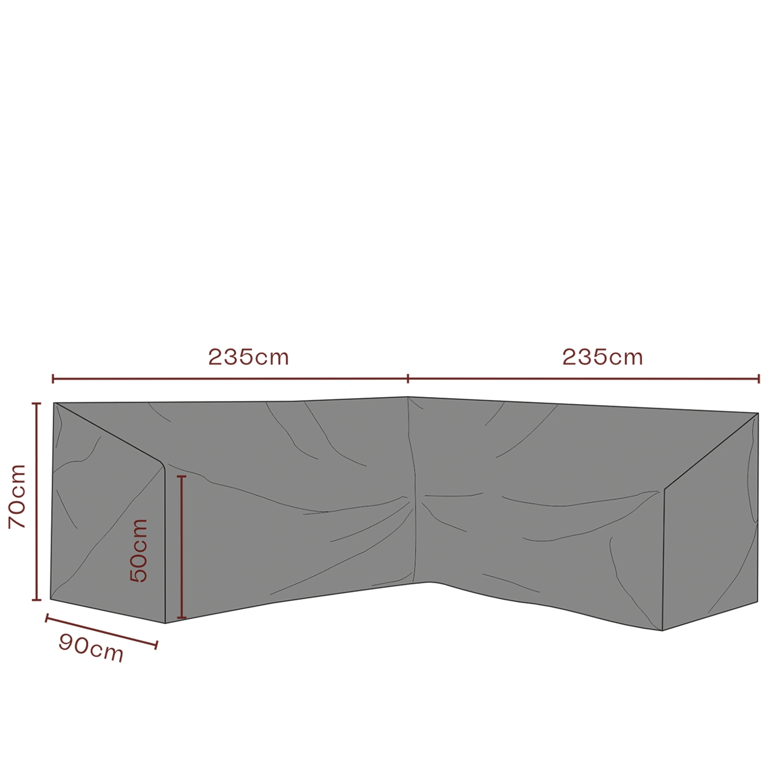 Detta möbelskydd passar liksidiga hörnsoffor med längd till höger och vänster på upp till 235 cm. Passar bland annat till hörnsoffan Soho från Brafab. Produktbild visar alla måtten korrekt.