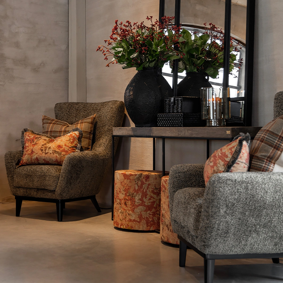 Ett kuddfodral i ull som kombinerar klassiskt rutmönster med en varm, rustik känsla – perfekt för att addera textur och färg till soffan, fåtöljen eller sängen. Framsidan har ett vävt mönster i dova, jordnära toner, medan baksidan är enfärgad för ett stilrent och balanserat uttryck.