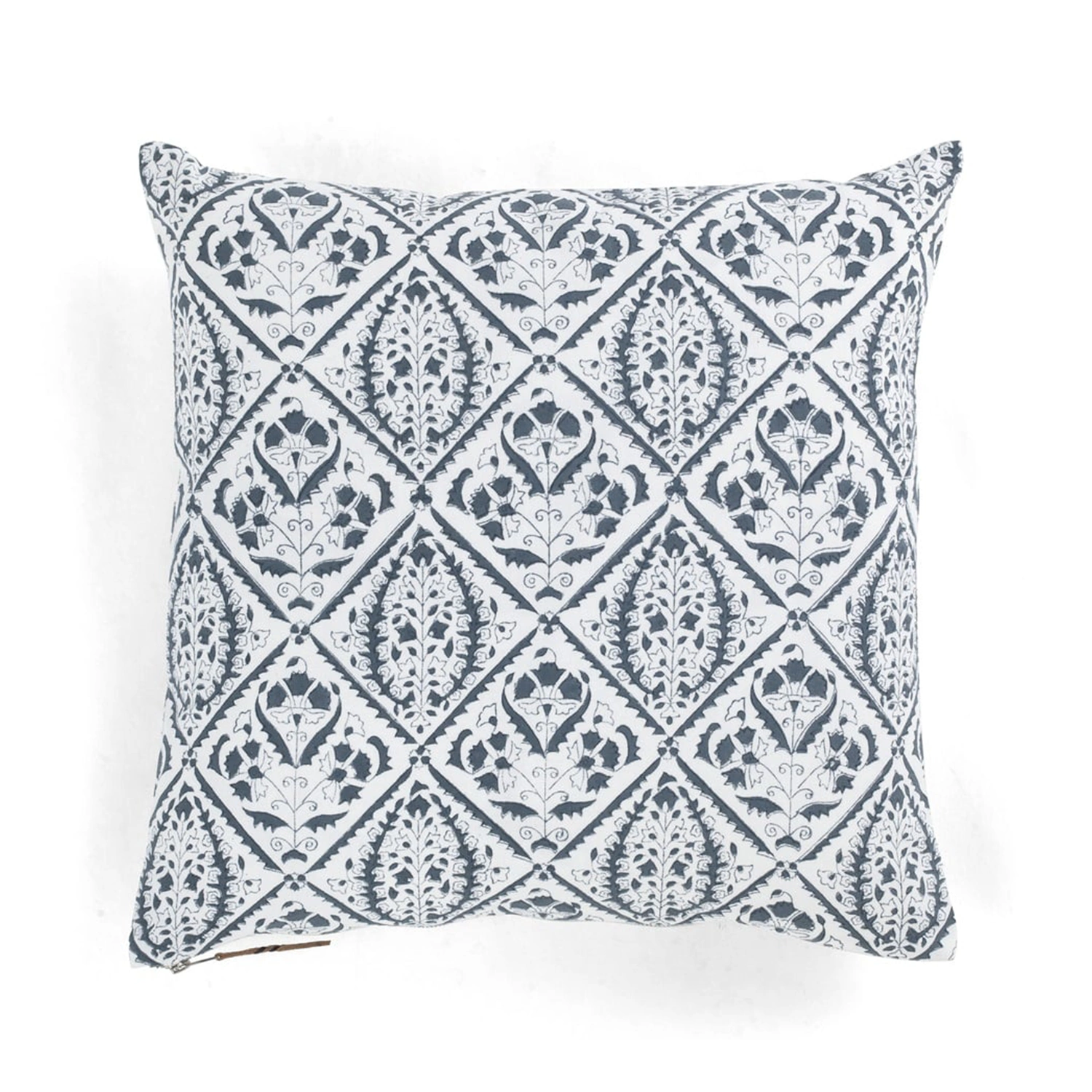 Jaipur är ett av Chamois nyaste mönster. På den här kudden är mönstret tryckt med traditionellt blocktryck på vitt bomullstyg. Vackert och klassiskt mönster som kommer i flera färger.