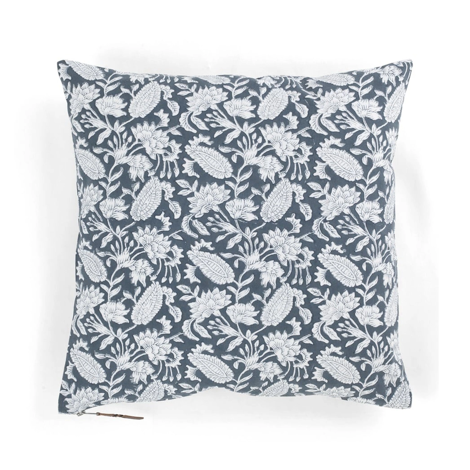 Chamois Jodhpur-kudde har en sofistikerad känsla tack vare sina genomtänkta detaljer och vackra handtryckta mönster i en sober blå färg. Designad med fokus på kvalitet och skönhet, är denna kudde tillverkad av högkvalitativ bomull, med en robust silverdragkedja och prydd med en dekorativ läderdetalj. Det ornamentala Jodhpur-mönstret är handtryckt med noggrann omsorg med den uråldriga metoden träblocktryck.
