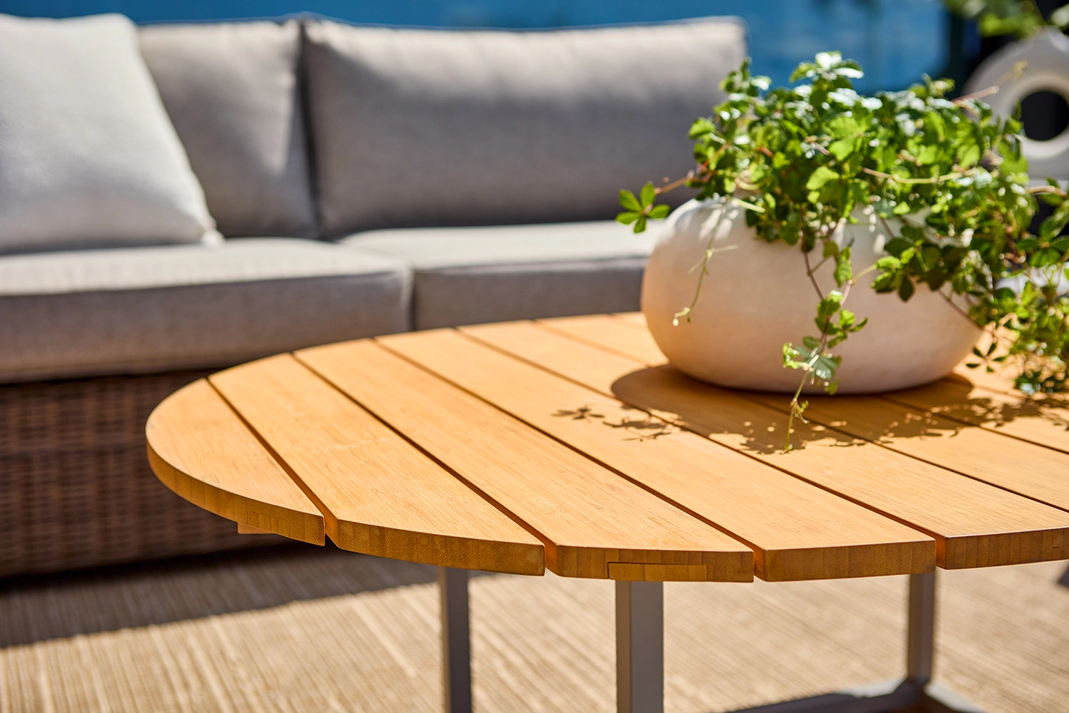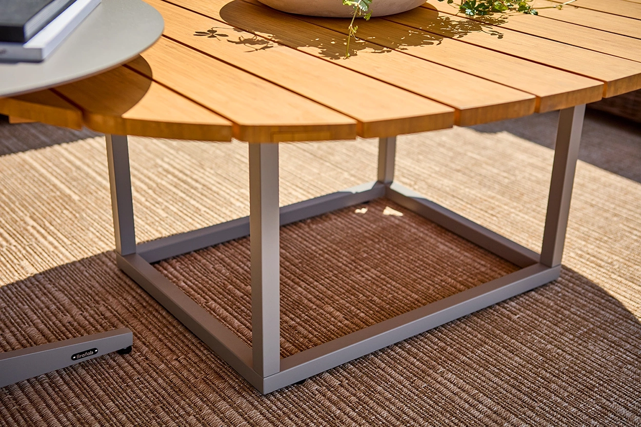 Naturlig form. Stadig närvaro. Olive är ett lekfullt och elegant bord, uppkallat efter oliven som inspirerat dess form. Stomme i aluminium och topp i bambu eller aluminium förenar funktion och design. Justerbara fötter ger stabilitet på alla underlag. Olive passar till de flesta soffgrupper och är även snygg att kombinera med soffbord som Mill eller Peace Lounge.
