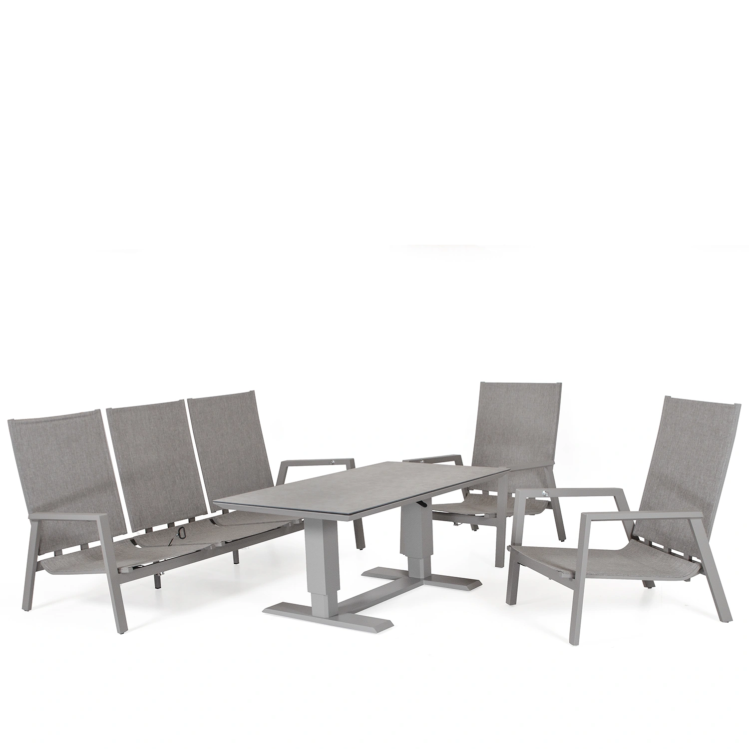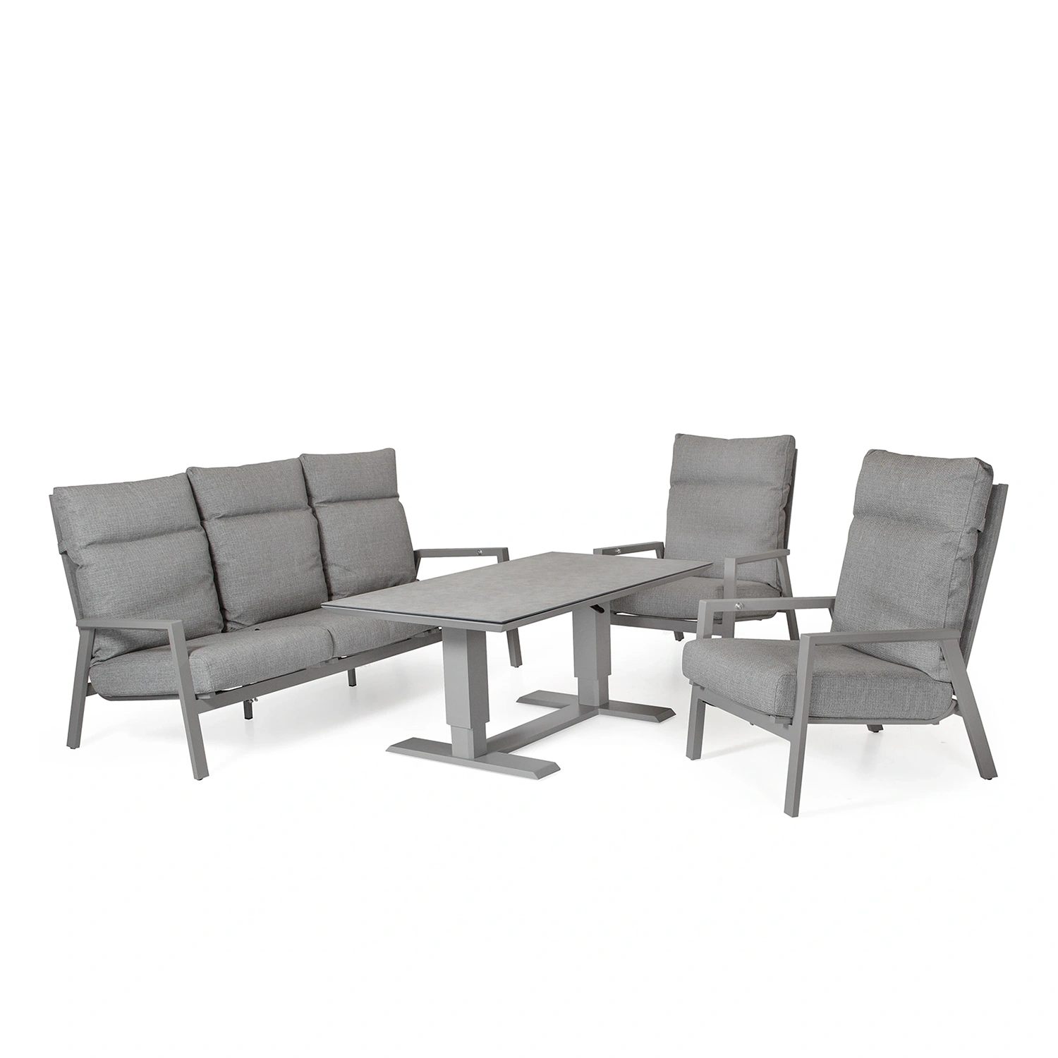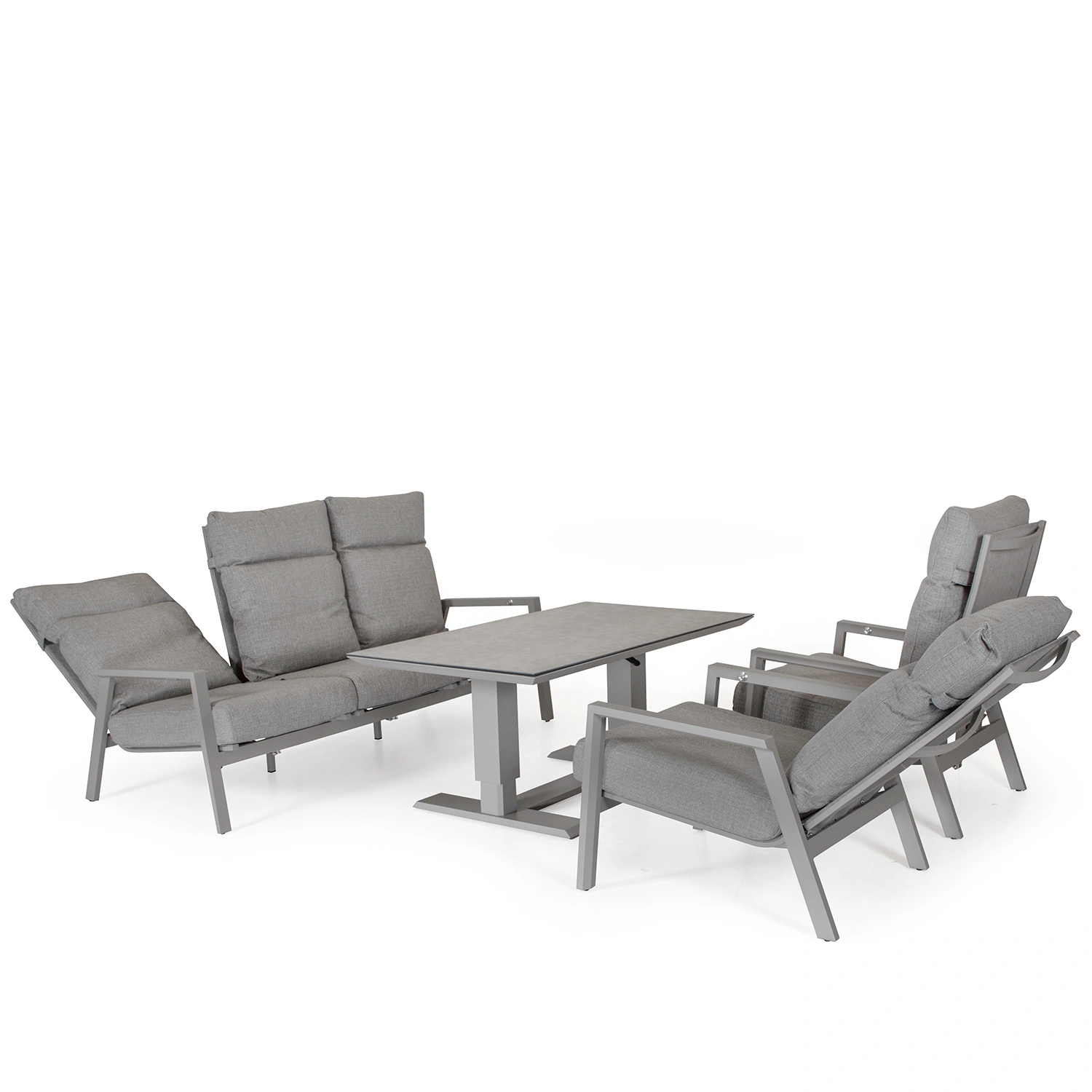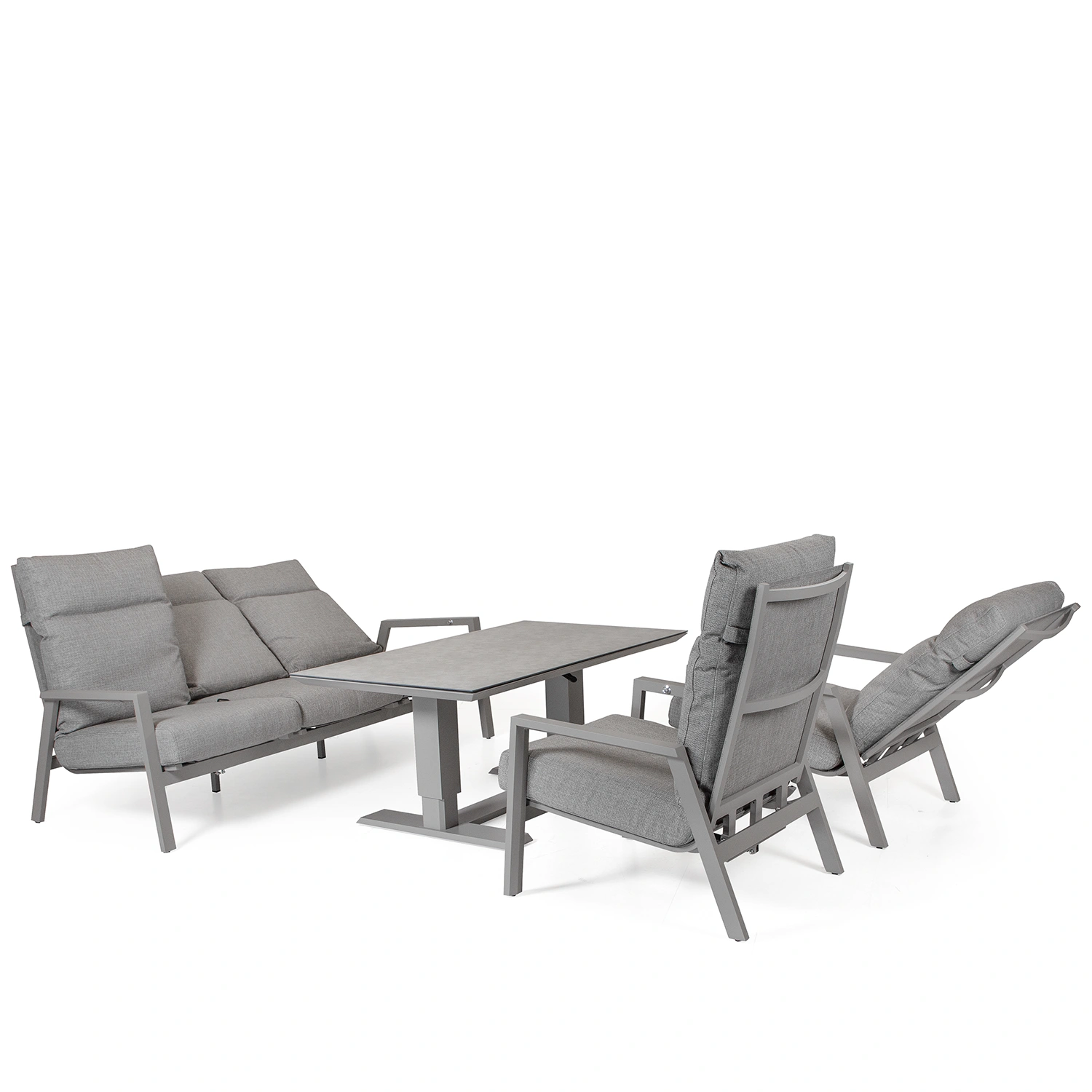 Palau soffgrupp med ställbara fåtöljer. Här tillsammans med soffbordet Lifty med höj- och sänkbar funktion.