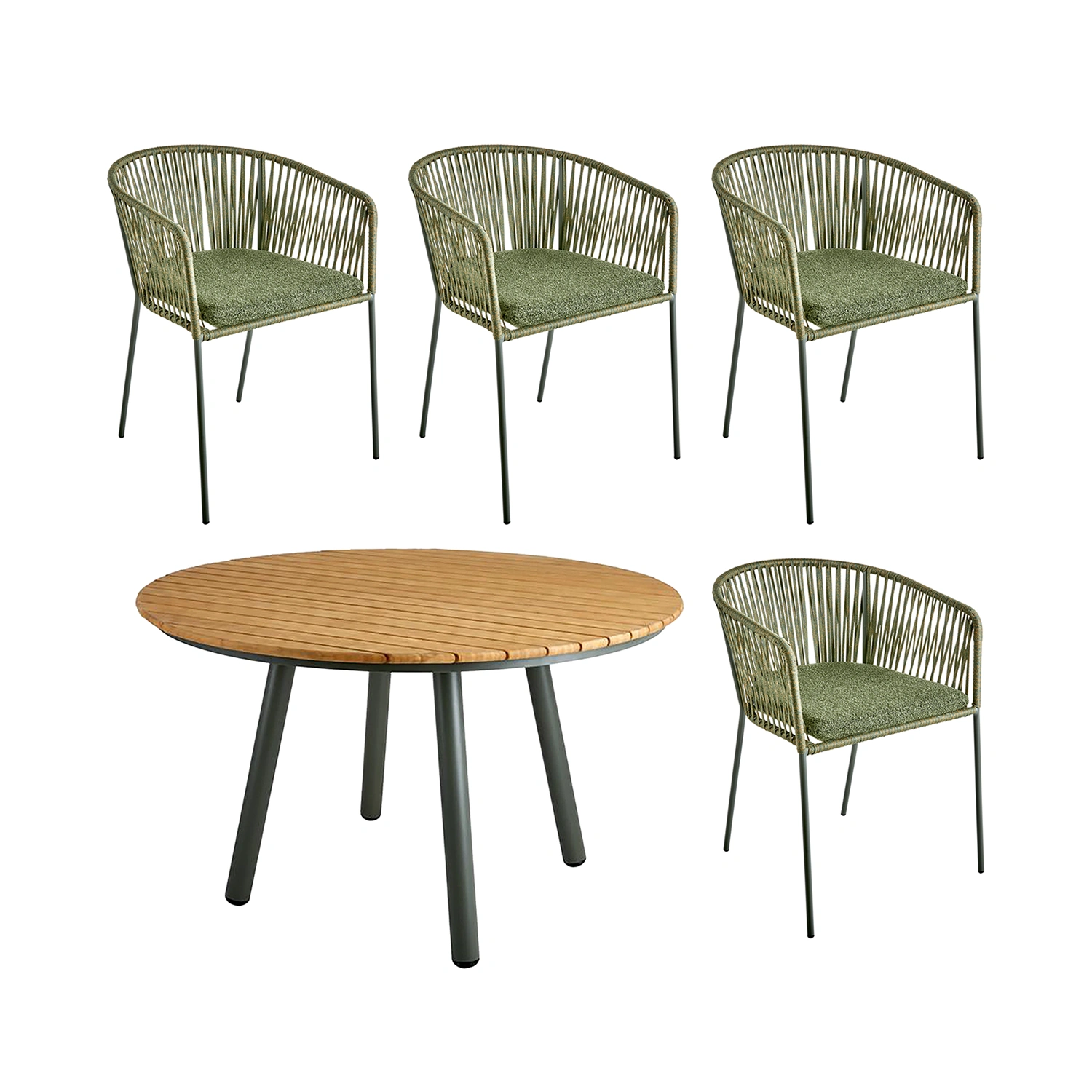 Piatto, matstolen som kombinerar komfort och hållbarhet med sin robusta stålram, designad för utomhusbruk samtidigt som den är vacker och stilren. Sits och rygg är gjord av breda, vävda rep som ger skönt stöd och tillför en touch av hantverksmässig elegans till din utemiljö.