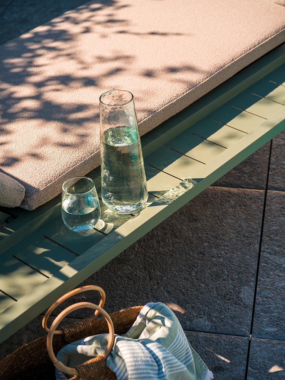 En modern och samtidigt klassisk serie i aluminium som bjuder på många kombinationsmöjligheter. De runda och mjuka formerna skapar en trivsam och inbjudande känsla i serien, där detaljerna står i fokus. Kollektionen finns i flera färger och omfattar soffor, matgrupper, vilsängar och serveringsvagnar – vilket gör det enkelt att matcha hela uteplatsen i samma stil.