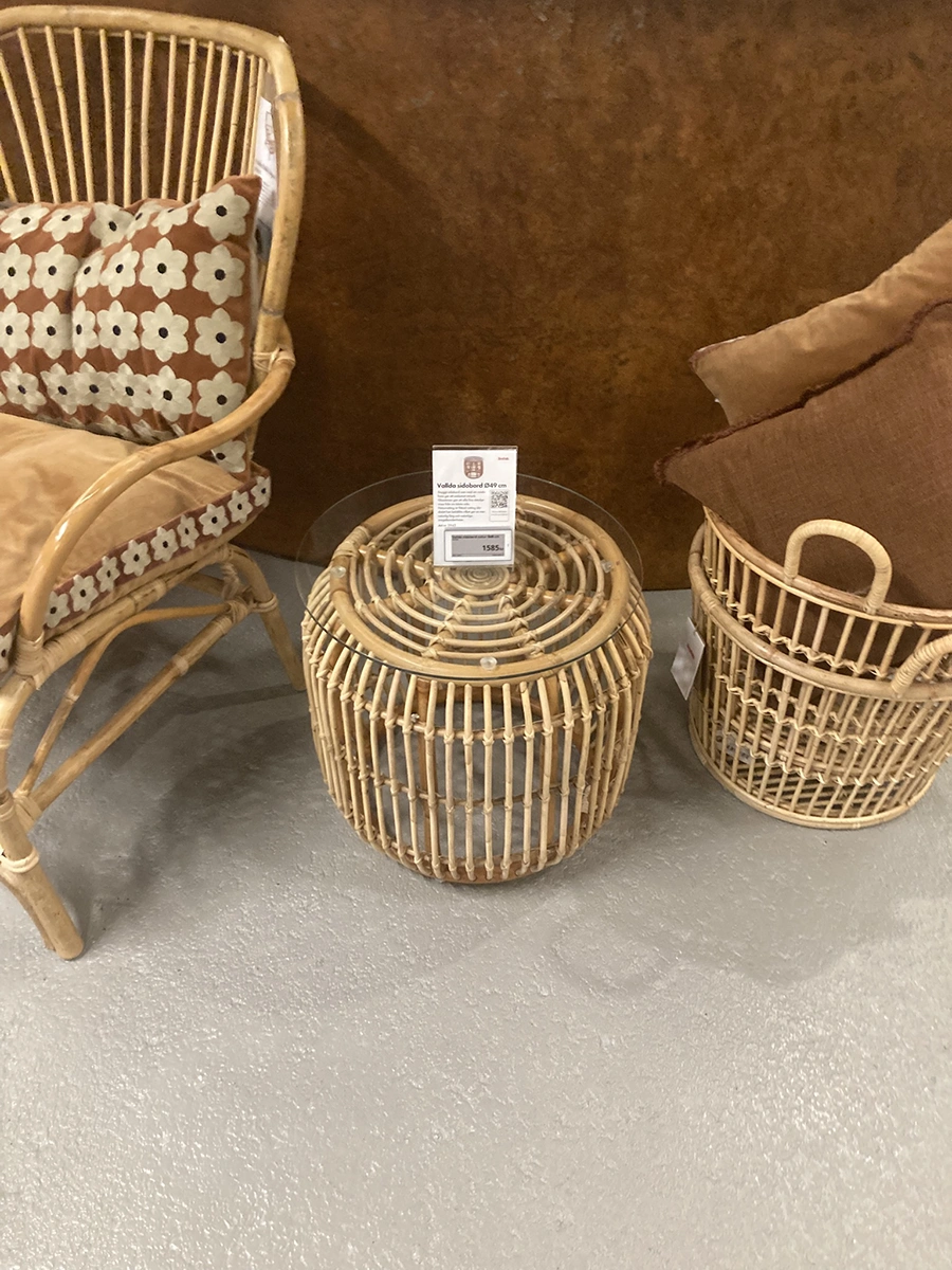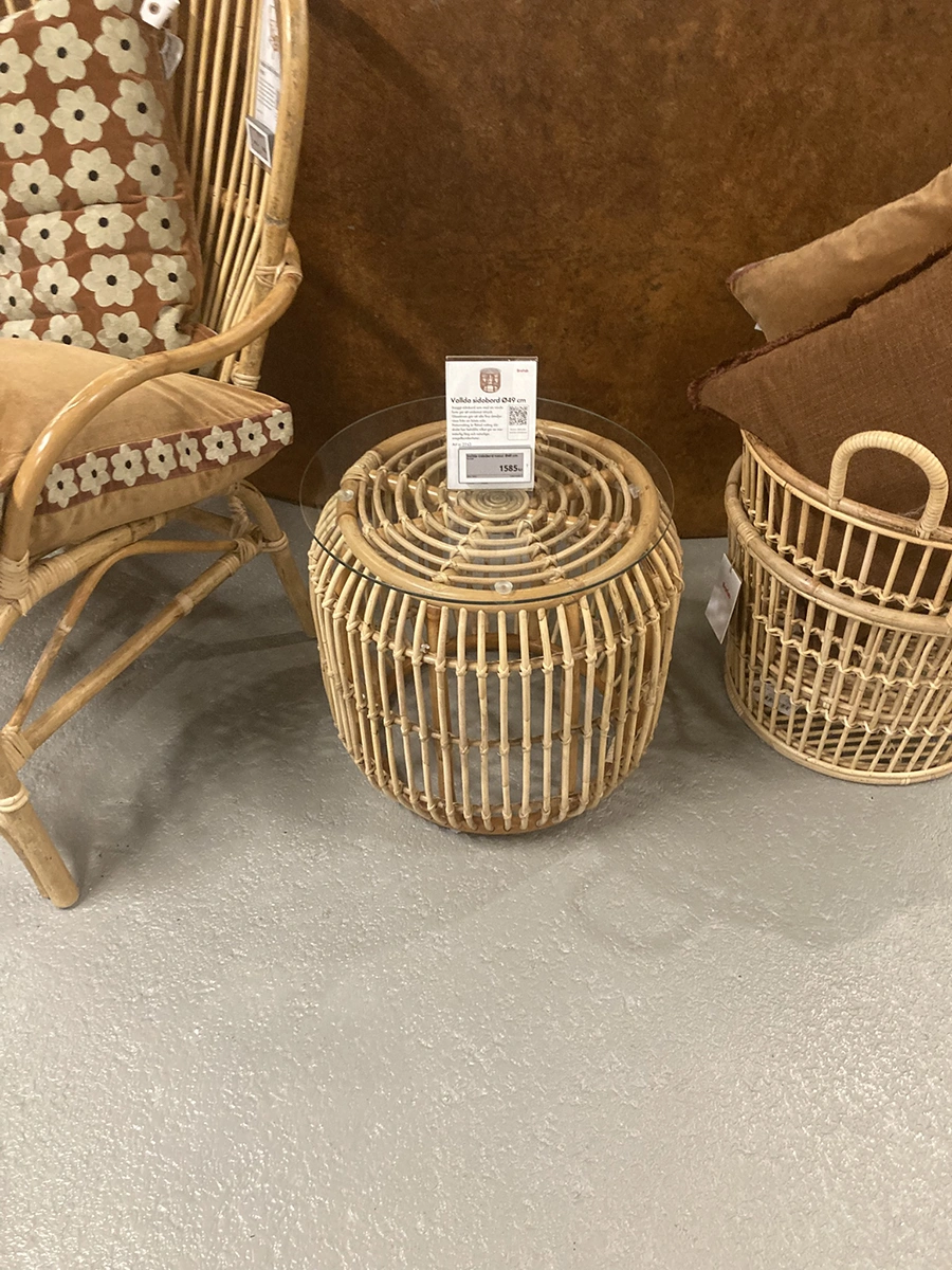 Vallda är en serie med stolar, bord, hänggunga och lampskärm i naturrotting med fina detaljer. Naturrotting är flätad rotting där skalet har behållits vilket ger en mer naturlig färg och naturliga oregelbundenheter.