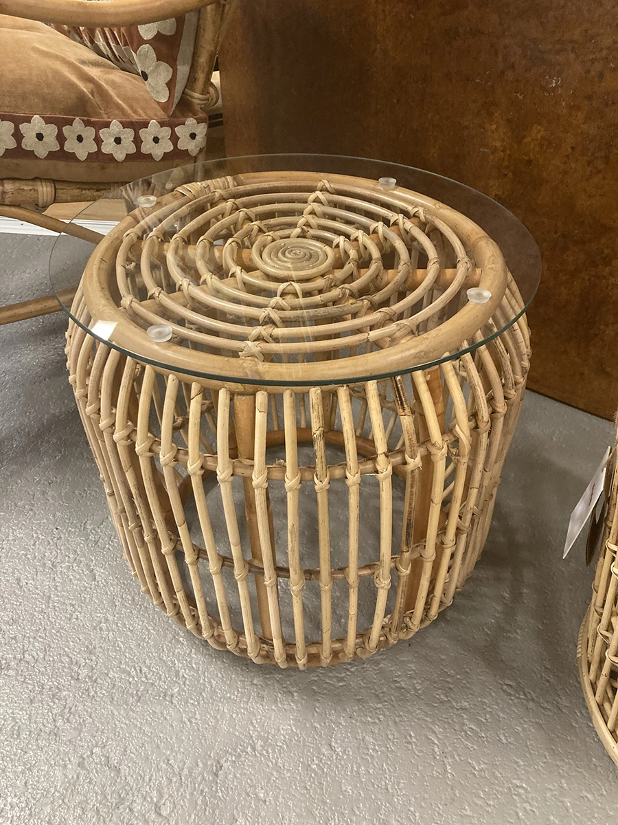 Snyggt sidobord som med sin runda form ger ett ombonat intryck. Glasskivan gör att alla fina detaljer visas från sin bästa sida.